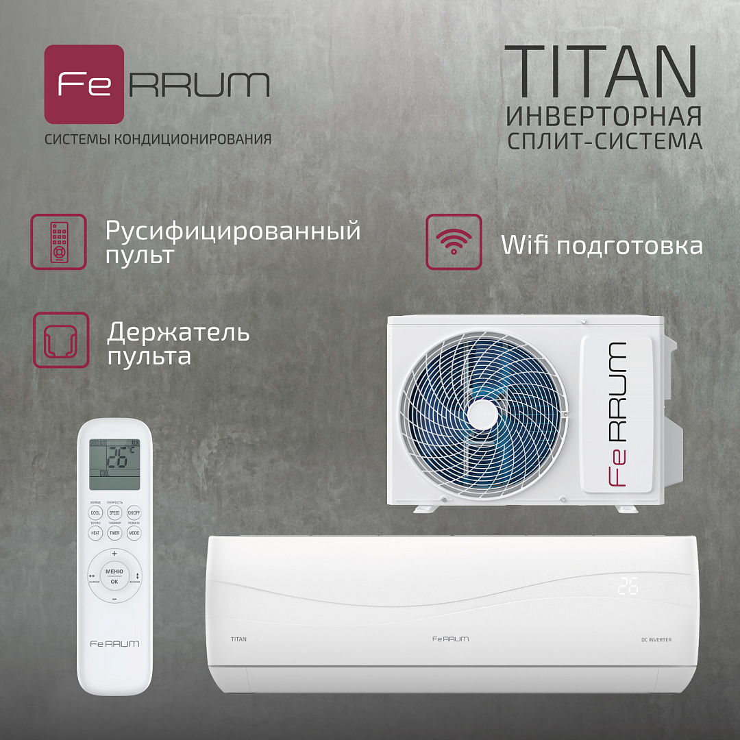 FeRRUM — производитель высококачественного климатического оборудования, известный своей надёжностью, современными технологиями и доступностью. Серия Titan Inverter сочетает в себе эффективность, долговечность и низкое энергопотребление, обеспечивая комфорт в любое время года.