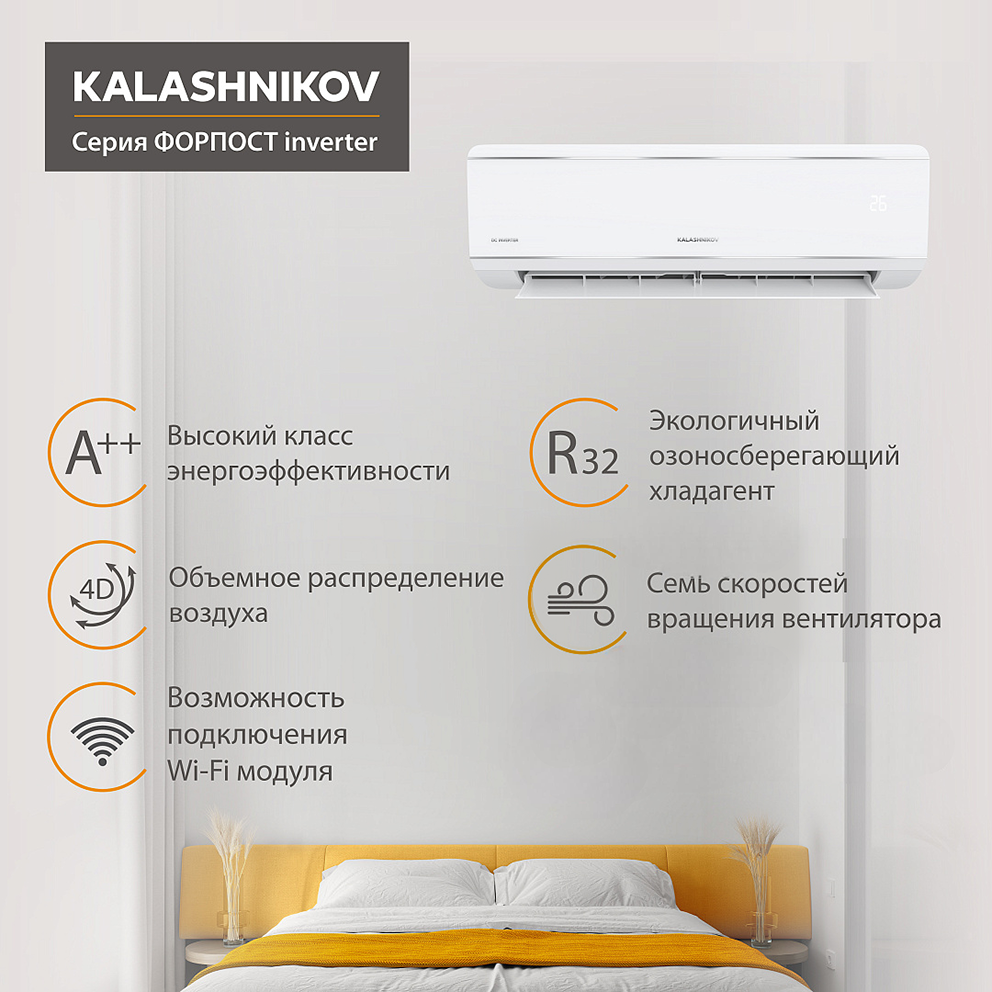 KALASHNIKOV — известный производитель бытовой техники, сочетающий передовые технологии с высокой надежностью и долговечностью. Линейка Форпост inverter разработана с учетом потребностей пользователей, предлагая эффективное и доступное решение для поддержания комфортного микроклимата в жилых и офисных помещениях.